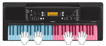 雙人模式使兩人能同時彈奏相同音色及音程的兩個部分。