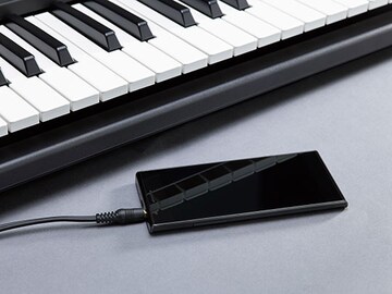 連接您的隨身音樂播放器,通過樂器內建的揚聲器播放您喜愛的音樂。 跟著彈奏、就像加入了樂團在演奏一樣!