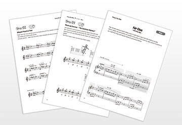Song Book (樂曲集)不僅包括內建歌曲的樂譜,還針對各種所需的彈奏技巧,做練習要點提示、和活潑有趣的圖像式說明。