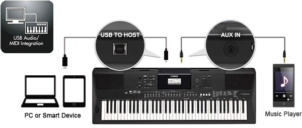 PSR-EW410以經由USB TO HOST端子傳輸音訊檔案為特色*,您可以錄製並儲存您的演出至電腦或智慧型裝置。