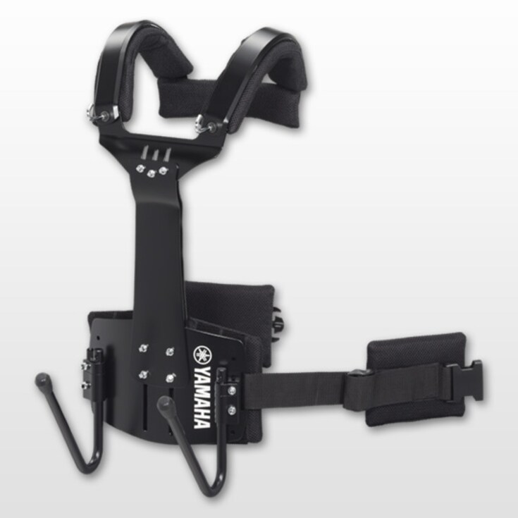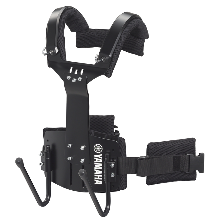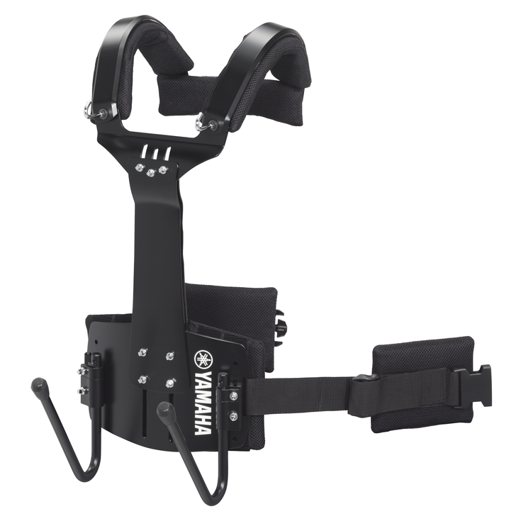 背架除了提供肩膀的支撐外,腰帶也提供額外的支撐力 和穩定度。穩定的分擔承受樂器重量,即使於行進間或是進行舞蹈動作時,也可展現一致的表現力。腰帶和護墊可大幅減少使用者的身體壓力,減少長時間練習和表演所產生的疲勞感。中央的快拆扣讓安裝和拆卸變得容易,並且提供固定配件,可固定使用時未用到的多餘腰帶。