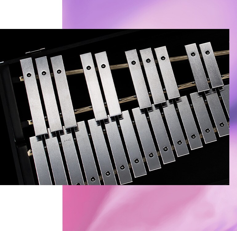 鐘琴音色範圍: 2 1/2 個八度 (f2-c5), 琴鍵材質: 高碳鋼