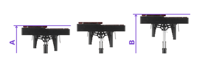 從琴框底部到音板頂部的距離,最小高度:69 cm (A),最大高度:88 cm (B)