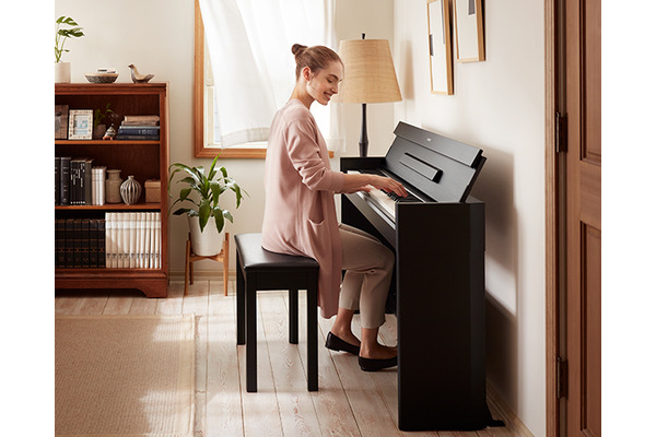 您將感受到如平台鋼琴般表現豐富的舒適感、音質和特別的共鳴——此外,別緻又小巧的設計佔用更少空間,更能夠適應您的生活空間,同時搭配居家裝潢。