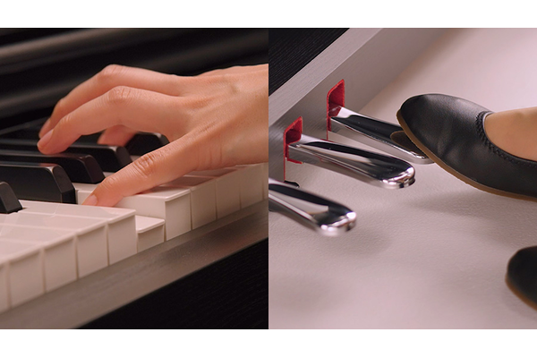 有了 88 鍵鋼琴機制,GHS(標準漸進式琴鎚)琴鍵再現原聲鋼琴的觸感,自然重現較低音域的沉重感,到高八度音階的輕巧感。GHS 琴鍵擁有平台型鋼琴式的回饋和觸感,並擁有表現力豐富的控制效果。此外,還有半踩踏板功能,可以真實模擬平台型鋼琴的制音動作,呈現各種豐富的表現力。