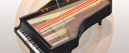平台式鋼琴的琴弦和音效會在整個樂器琴身產生共鳴,展現豐富的殘響,讓聽者感受到豐富的環場音效。彈奏的琴弦不僅發出振動,且其他琴弦也會對彈奏的琴弦做出反應。這是鋼琴樂音如此複雜又豐富的原因。