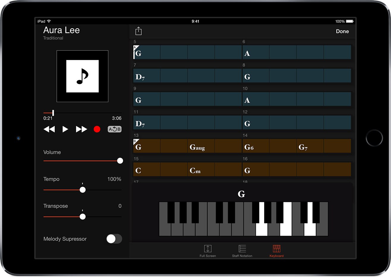 Yamaha和弦追蹤器app適用iPhone/iPod touch/iPad,透過分析儲存在iOS裝置的音頻樂曲,來幫助您進行練習與演奏,並於同時顯示出和弦符號供您參考。