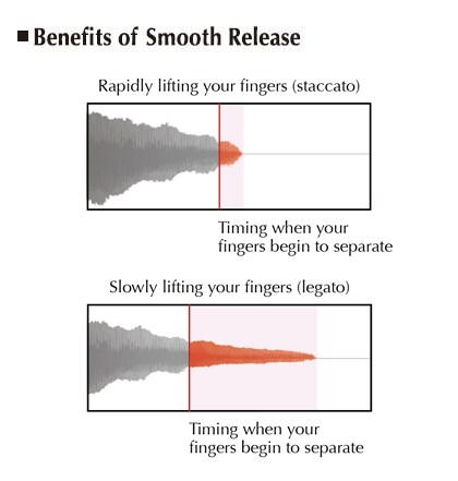 採用 Yamaha Smooth Release 技術,Clavinova 鋼琴在演奏斷奏時展現清脆音調,且透過放開琴鍵,產生餘音繞樑的音效。這讓鋼琴演奏者的演奏展現更細微的差別。