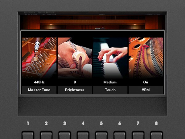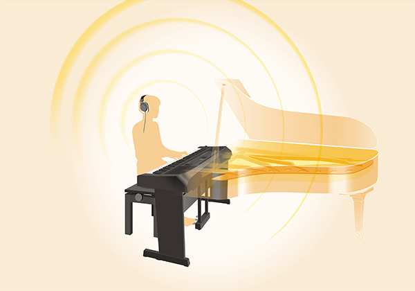 使用耳機時,耳機立體聲優化功能讓演奏者感覺坐在原音鋼琴前享受平均分布的音色。使用耳機立體聲優化功能,自原音鋼琴取樣的音色宛如來自樂器本身。除去佩戴耳機演奏的缺點,讓演奏者享有舒適且自然的體驗。