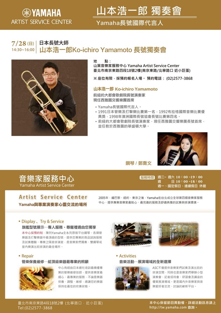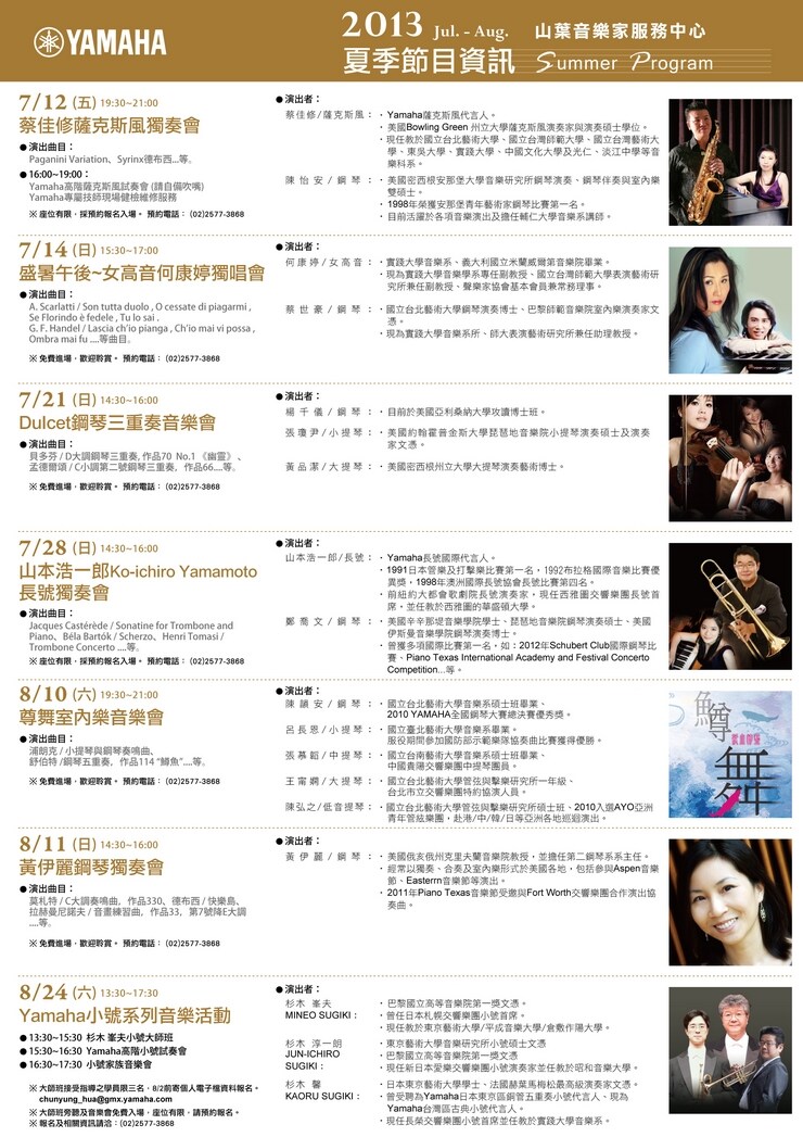 Yamaha音樂家服務中心~2013節目資訊(7月、8月)