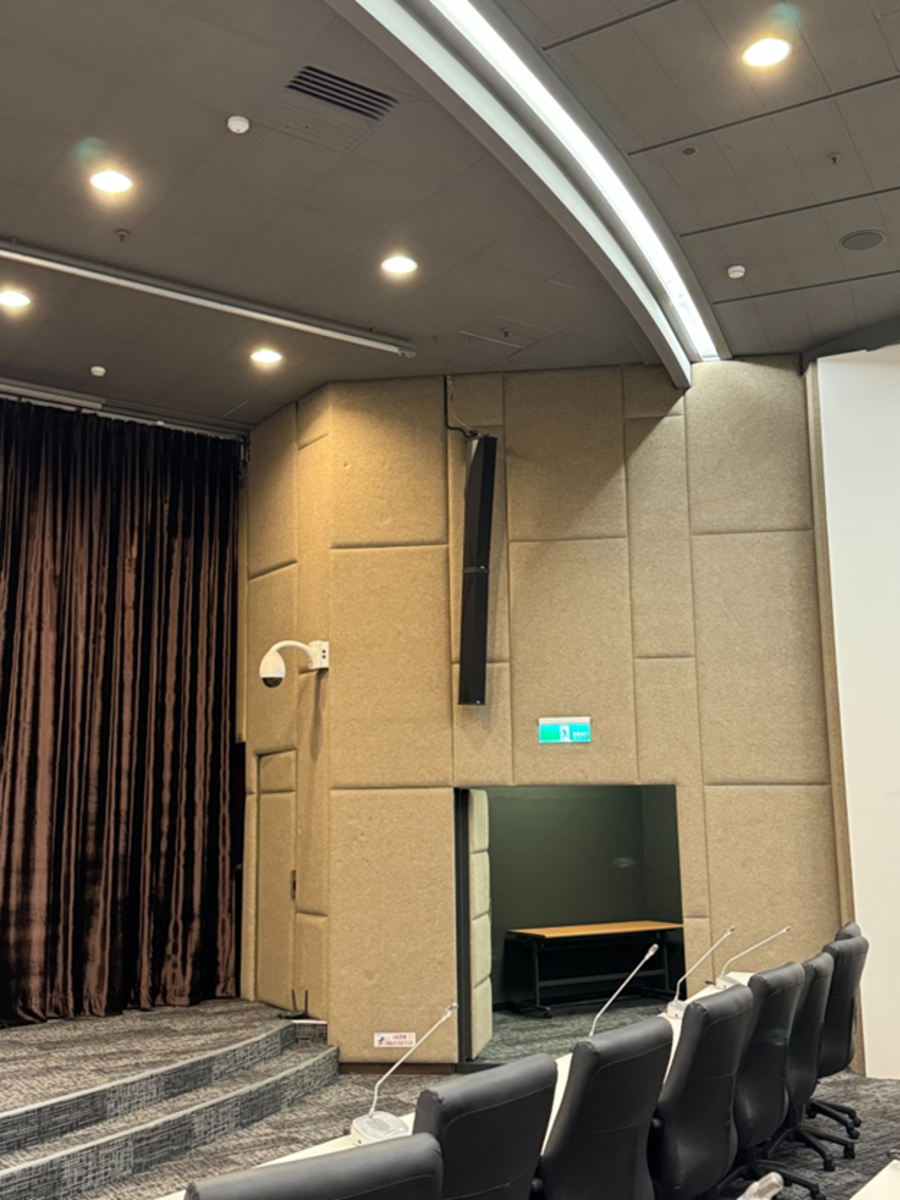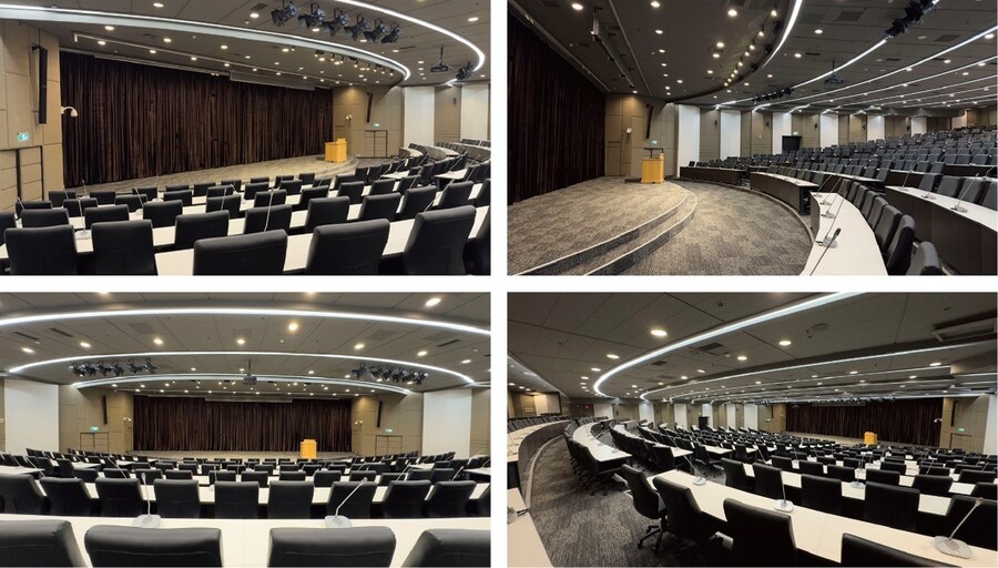 場地為扇形階梯式,深度約27公尺,寬度約25公尺,可容納約200人,具備固定式長桌以及移動式皮椅,各席次安裝會議系統麥克風,也具備無線麥克風可供講者或與會者使用。混音器使用Yamaha TF5,將訊號送至喇叭系統。