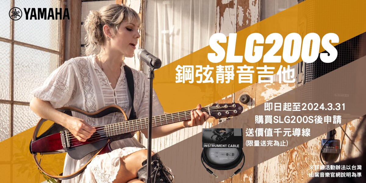 即日起至2024年3月31日止,凡期間內購買Yamaha SLG200S鋼弦靜音吉他(不限顏色),憑保證卡與購買證明即可向Yamaha申請兌換贈品: