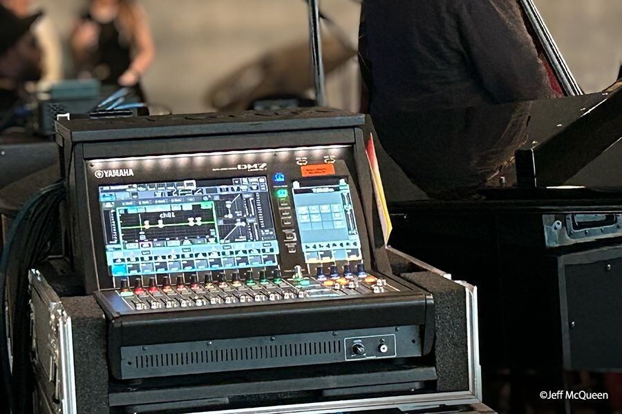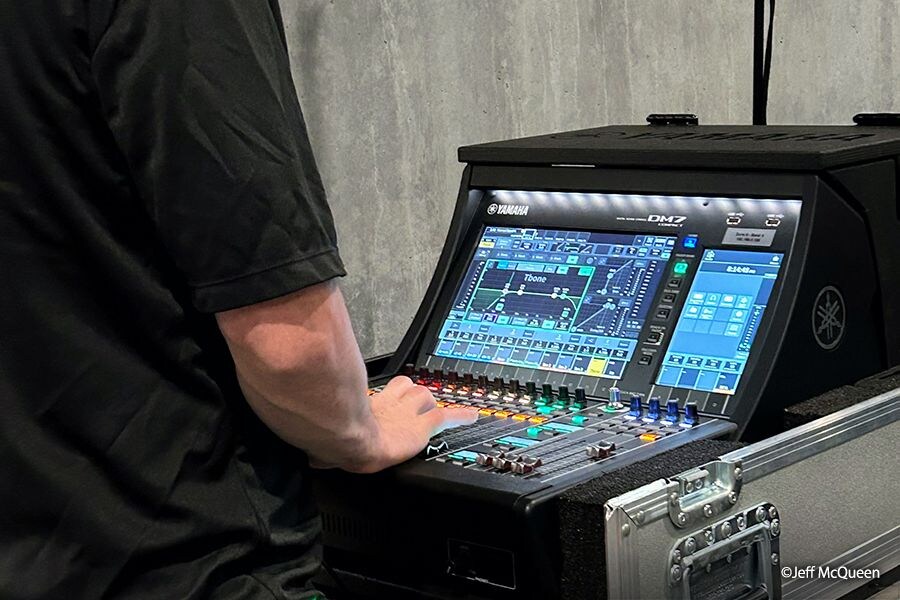該活動的高複雜度讓我們必須打造出靈活、堅固耐用的系統。Yamaha 的 Dante 基礎設施構成主骨幹,整個場地一共部署了 11 台控台,包括 (2) 台 DM7-EX、(4) 台 DM7-C 和 (5) 台 DM3 系統,每台都可作為本機混音點和 I/O 中心。
