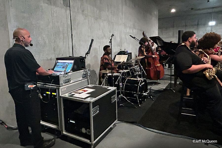 洛杉磯郡藝術博物館 (LACMA) 在尚未完工的大衛·葛芬 (David Geffen) 畫廊內舉辦了一場獨特的音訊活動,超過 100 位音樂工作者在 11 個不同的地點演奏了卡馬西·華盛頓 (Kamasi Washington) 的六首原創作品。雖然各音樂工作者身處異地,但他們的合奏非常和諧,營造出一種身臨其境的音景氛圍。透過 Yamaha 先進的音訊設備和 Mastermind Production Group Inc. 的技術支援,觀眾可以體驗在進化中的建築空間中探索現場創作。