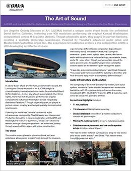 洛杉磯郡藝術博物館 (LACMA) 計畫不僅是一場音樂會而已,更是大膽對建築、聲音和人類感知的多感官探索體驗。Yamaha 精密設計的工具和 Mastermind 客製化的方法,讓複雜的演奏也能輕鬆完成。對查德和他的團隊來說,這是提升音訊體驗的決定性時刻。對觀眾來說,這是一次難忘的體驗,讓他們宛如置身於音樂律動中。