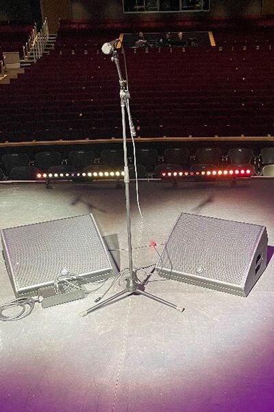 現場錄製前,Yamaha DHR12M 音箱被放置在舞台上