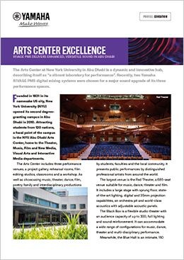 紐約大學阿布達比分校表演藝術中心是充滿活力和創新精神的中心,並自詡為「充滿活力的表演實驗室」。最近,該中心針對其三個表演場所進行重大音響升級,選用了兩套 Yamaha RIVAGE PM5 數位混音系統。