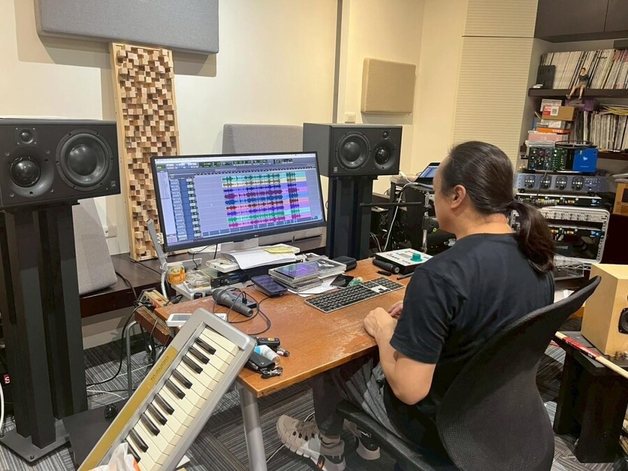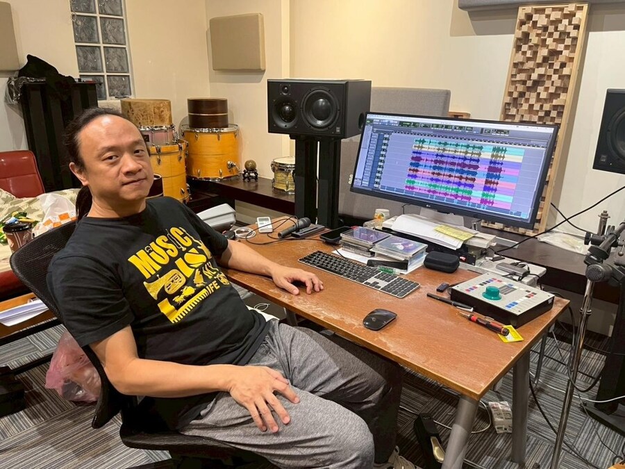 近年他在家中打造個人錄音室,從鼓組收音、編曲到混音都親自處理。