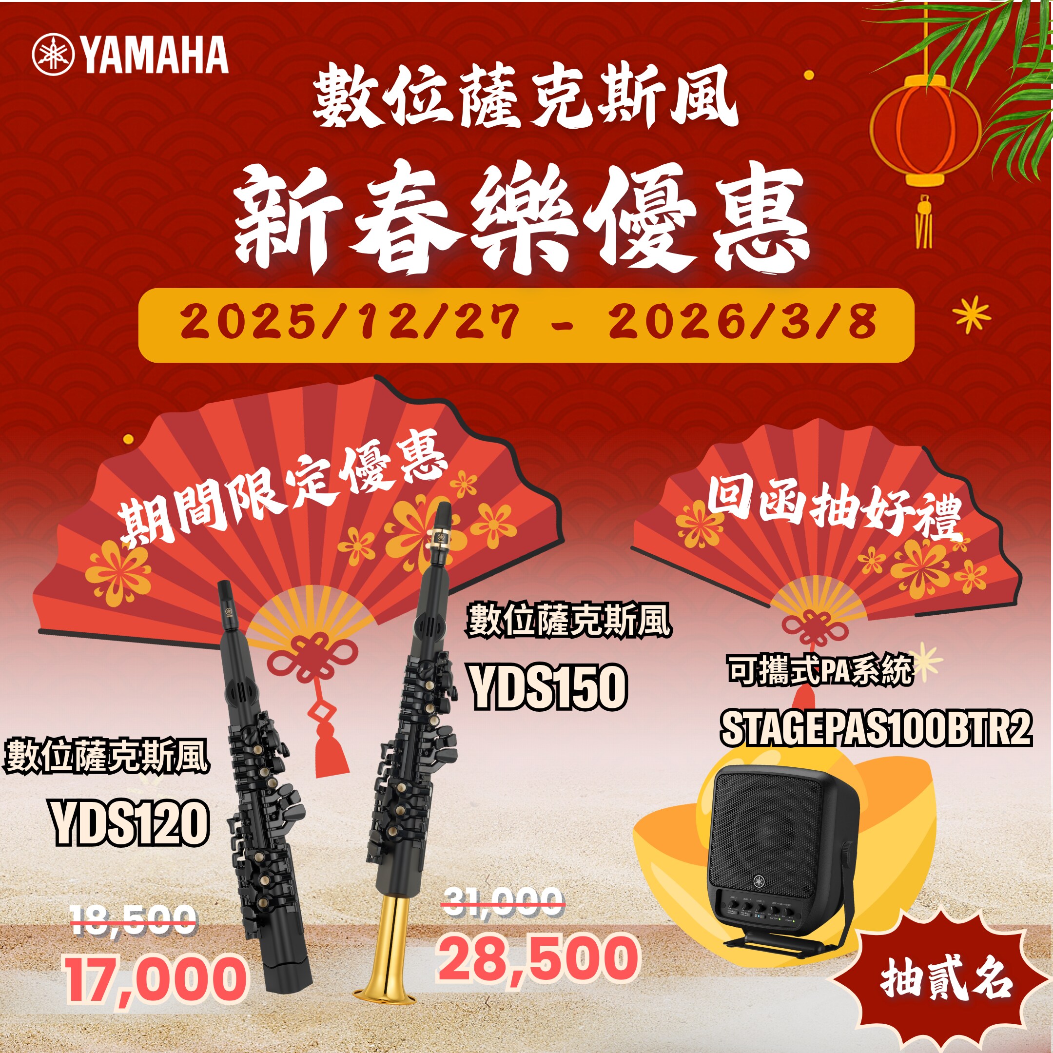 優惠方案:期間內購買數位薩克斯風YDS系列(不限通路),完成回函即可參與抽獎活動。