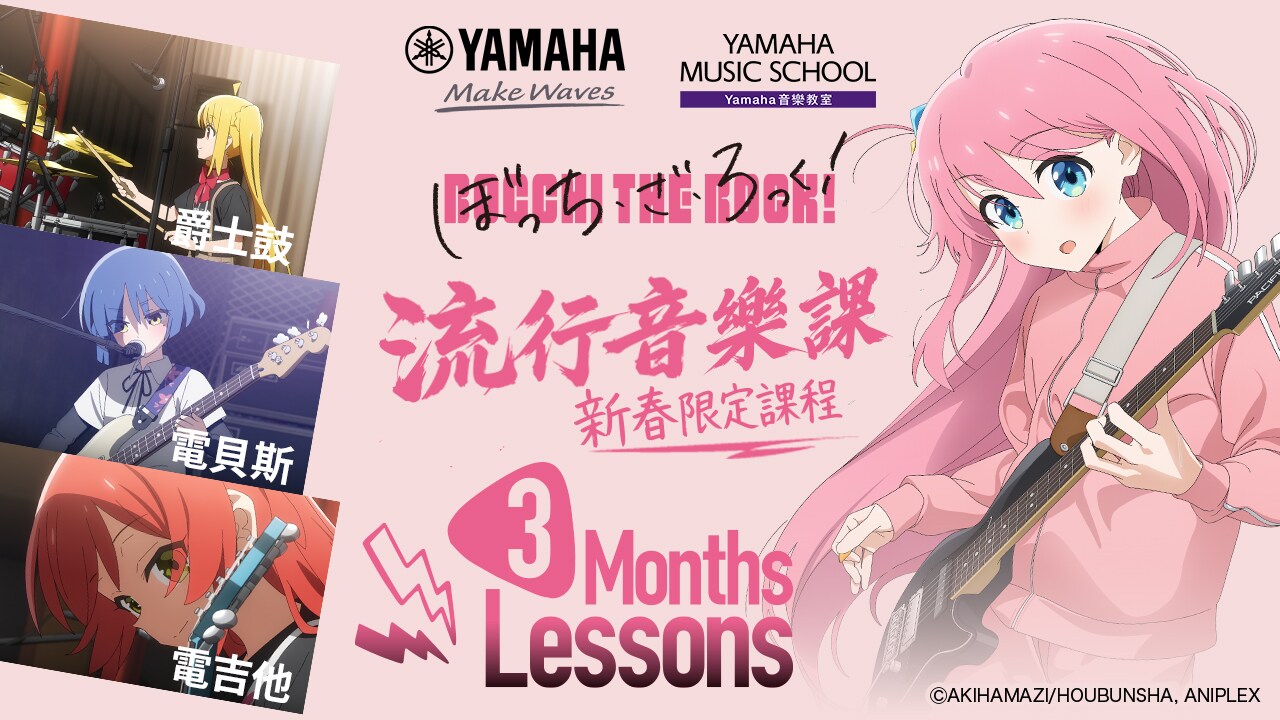 在 3 個月、共 12 堂的一曲課程活動中,挑戰《孤獨搖滾!》的歌曲!使用 Yamaha 原創樂譜,無論是剛開始接觸或已具備基礎的朋友都能加入!