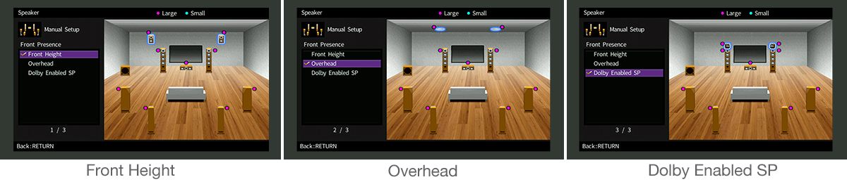 虛擬臨場揚聲器功能讓中置及環繞揚聲器創造出虛擬臨場效果。就算在安裝條件有限的情況下,也能體驗CINEMA DSP 3D 環繞音效。此擴大機也擁有後方環繞揚聲器功能,讓您可以在無後方環繞揚聲器的情況下,也能體驗來自後方的自然音調。