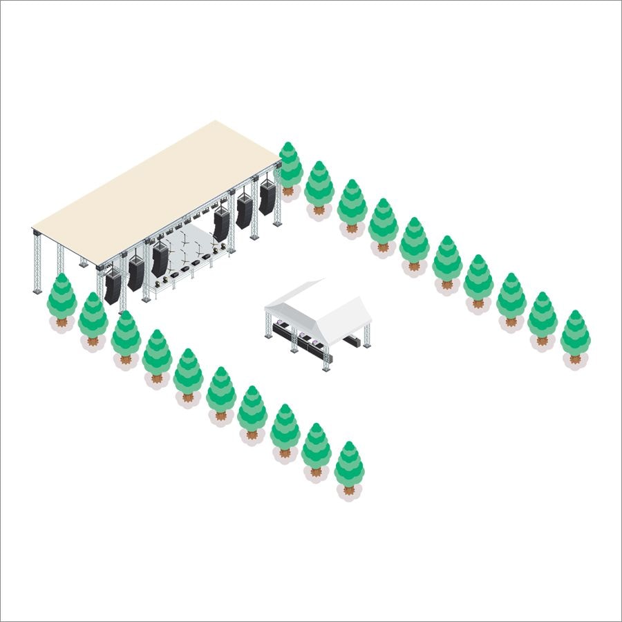 此系統是為超過5,000 席大型戶外演唱會所設計。具備 288 聲道輸入的混音系統,能夠容納最大的樂團或樂隊,確保清晰、一致的聲音能透過高品質高輸出的喇叭系統,一路穿透到最後一排。該系統不只提供優越音質與功能性,還搭載使用者友善介面,還有為大規模演出和活動提供的可靠系統冗餘支援,全力避免系統失誤。