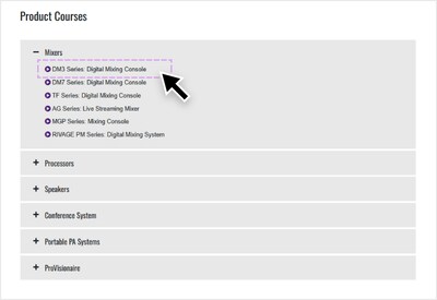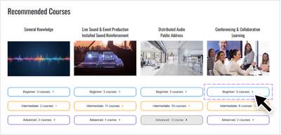 在「 課程」部分,課程依特定 系列分類。只需選擇課程即可前往培訓頁面。