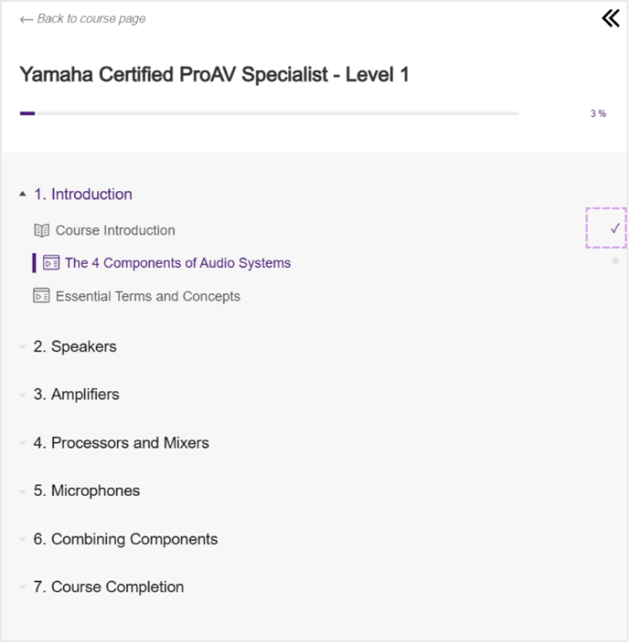 您完成一個模組時,清單右側會出現複選標記以說明您的進度。