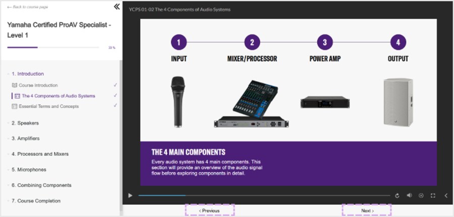 播放器底部會出現「上一個」和「下一個」按鈕,以在模組之間輕鬆切換。