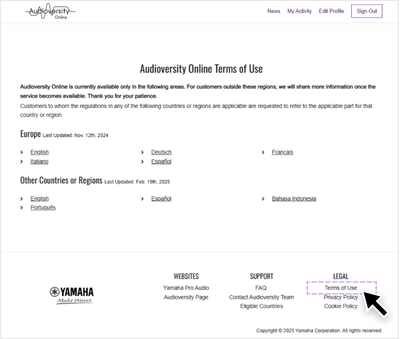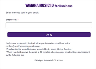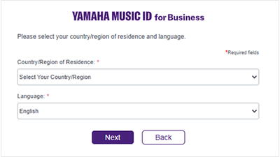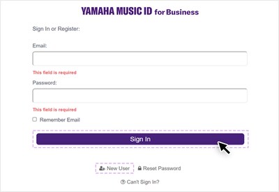 - 如果您已經擁有 Yamaha Music ID for Business:請輸入您的憑證登入並直接進入步驟 5。