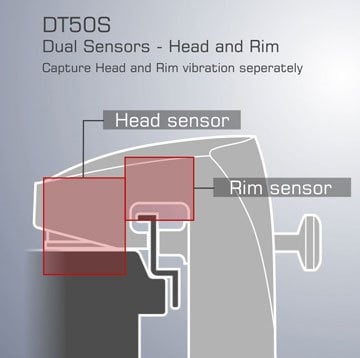 DT50S 牢牢固定在鼓上,並藉由翼形螺釘輕鬆固定兩個 DT 觸發器。