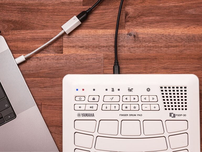 將 FGDP 連接到您的電腦或智慧型裝置,就可以使用FGDP手指鼓的高效能鼓墊與您最喜歡的軟體音源,或錄製音訊到 DAW。使用 Yamaha 的 Rec'n'Share 應用程式強化您的錄音體驗,讓您輕鬆錄製音質卓越的優質表演影片,並在社群媒體上分享。