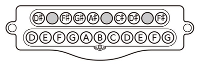 以D(d2)為最低音的音管配置範例(YCH7118不包含F#(f3#)音管和G(g3)音管,需另購)