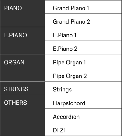 音色取樣自一台音色明亮又透徹的演奏型平台鋼琴,其擁有寬廣的高音,整體音色相當紮實。