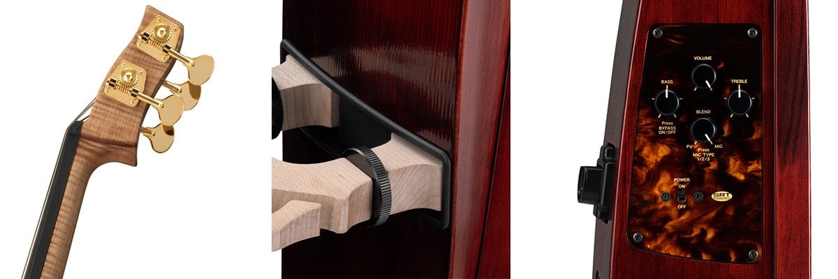 這款樂器提供出色的音響反應及自然的音色演奏性。材質上,選用在傳統低音提琴上較少見的烏木指板,並搭配美麗的虎紋楓木琴頸。