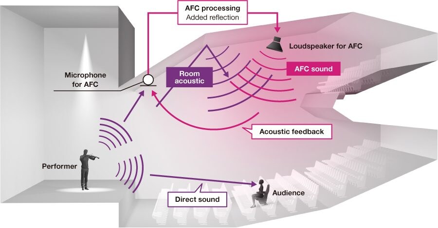 AFC Enhance 控制空間的殘響,同時利用現有結構的自然聲學特性。AFC Enhance 與在聲源中加入人工殘響以創造不同的音訊印象方式不同,採用多年來開發的技術,控制實際空間中聲音的傳播,進而改變殘響和音量,同時維持樂器和人聲的自然特性。沒有太多的混響,相對無聲的空間情境(例如活動空間、禮堂和宴會廳),是演講的理想選擇,但是如果在這種空間中舉行古典音樂演奏,聲音就會缺乏深度,這對表演者和聽眾來說都不是最佳選擇。 AFC 系統可以不需進行空間結構翻新就製造理想的聲音環境。