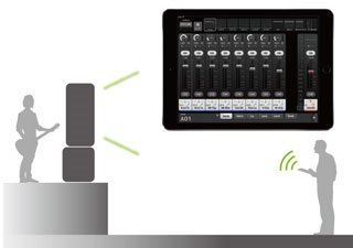 TF系列的MonitorMix應用程式允許同時從多達10個iPhone,iPad或iPod touch設備作個人無線AUX混音。每個表演者可以方便地控制分配給他們的AUX輸出,無需處理複雜的設置或參數。他們還可以建立個人群組設置更方便調整。例如:所有音量上只有一個推桿。由於最多三個運作的TF編輯器或StageMix的設備及最多10台運作MonitorMix設備可以同時進行連接,即使是大型樂團可以符合他們的需求,減少了對音控人員的要求。