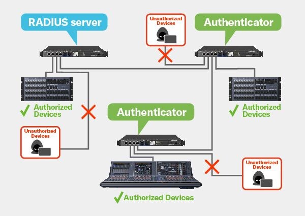 內建 RADIUS 伺服器功能增強 SWP2 系列中內含的 VLAN 功能。將一台交換機設定為 RADIUS 伺服器,並將其連結其他交換機,即可有效阻隔未經授權之網路訪問,從而提高安全性,即使在複雜的大型裝置中也是如此。可以透過 Web 式 GUI 快速輕鬆設定裝置身分驗證。