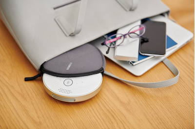 透過藍牙連接智慧型手機或平板電腦,無需使用複雜的線路,就可進行智慧遠距通訊。在使用鋰電池供電的情況下,該裝置可讓您連續通話長達 10 小時。您可以一整天從不同地點進行遠距通訊,且無需擔心剩餘電池電量。